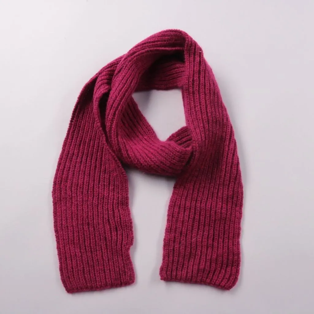 Вязаный шарф без бренда, выполнен в рубчик и в насыщенном бордовом оттенке. Подойдёт для зимних прогулок и повседневных образов, хорошо сочетается с пальто и пуховиками. Плотная вязка помогает лучше сохранять тепло и защищает шею от ветра.