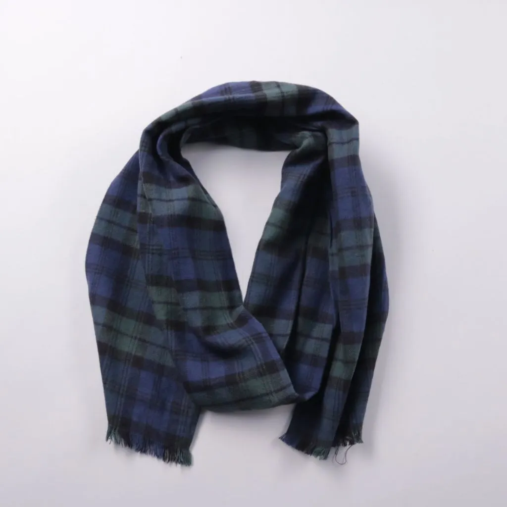 Шарф Watsons в клетку с бахромой по краям, в сине-зелёной гамме. Подойдёт для повседневных образов и прогулок в прохладную погоду, хорошо сочетается с пальто и куртками. Мягкая ткань удобно драпируется и добавляет тепла без лишнего объёма.