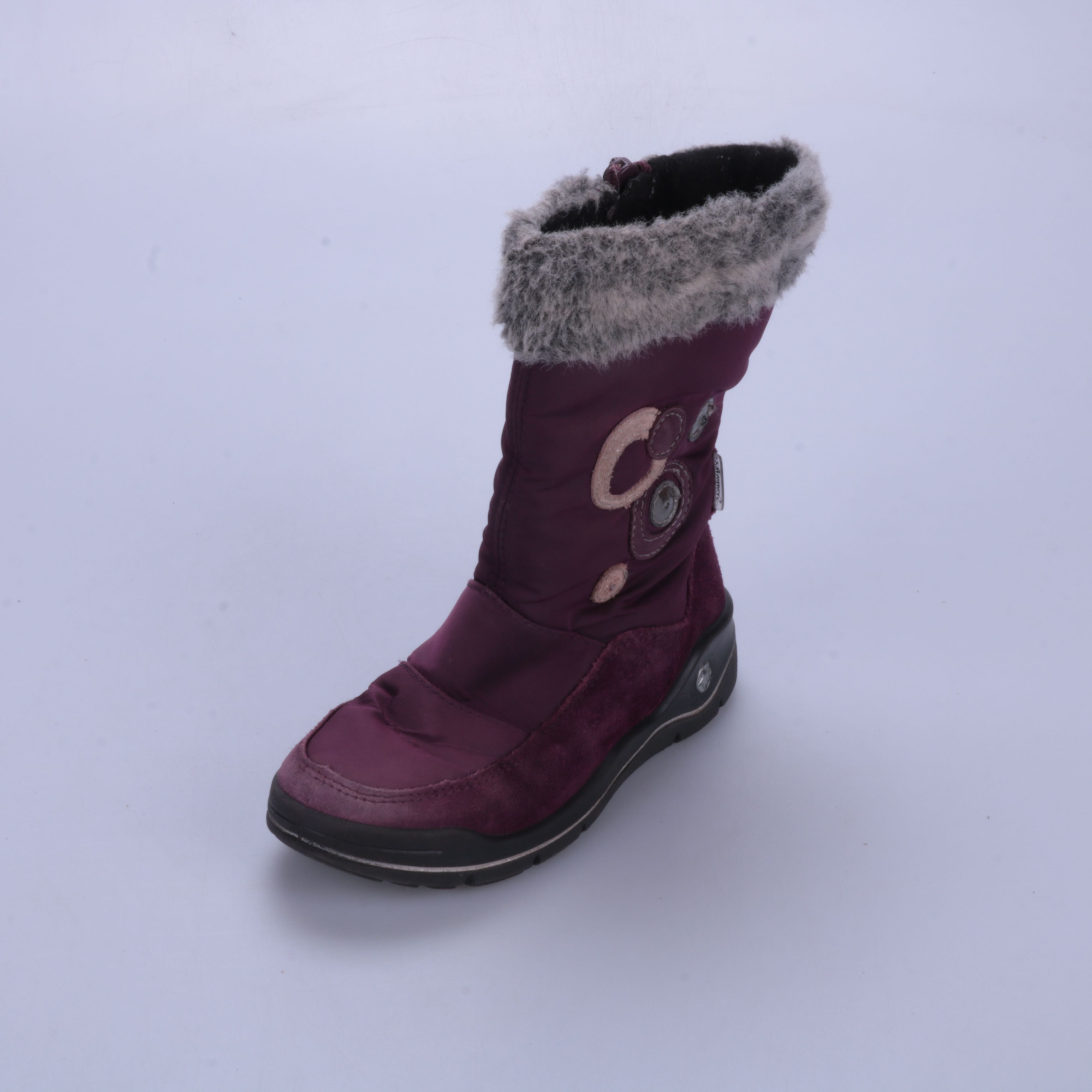 Зимние сапоги Ricosta для девочки в бордовом цвете, с тёплой подкладкой и меховой опушкой. Подойдут для прогулок в холодную погоду, удобная молния сбоку помогает быстро надевать и снимать обувь. Рельефная подошва даёт хорошее сцепление на снегу.