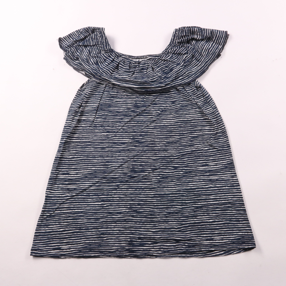 Детское платье с открытыми плечами и воланом, в тёмно-синюю полоску. Подойдёт для лета, отдыха и прогулок, легко сочетается с сандалиями и кедами. Мягкая вискоза с добавлением эластана хорошо тянется и не сковывает движения.