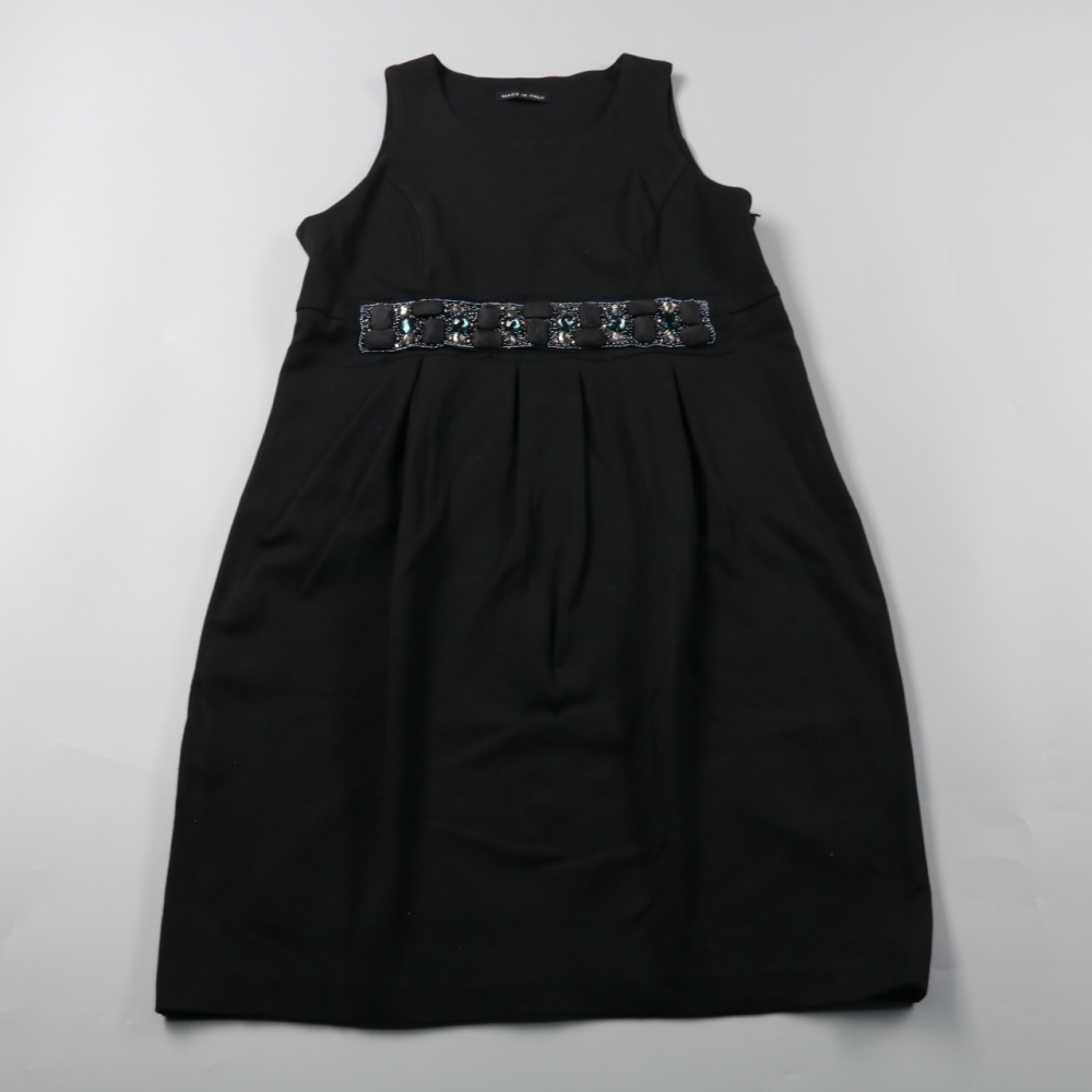Чёрное платье без рукавов с декоративной лентой на талии. Подойдёт для школы, праздников и выступлений, хорошо смотрится с блузкой или водолазкой. Материал плотный и держит форму, удобно сидит и не стесняет движения.