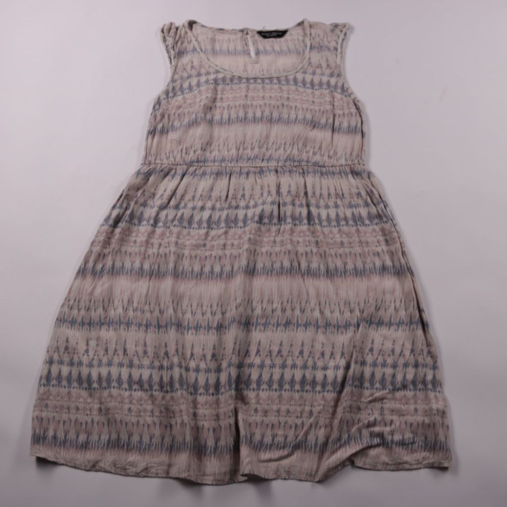 Платье Dorothy Perkins без рукавов с нежным геометрическим принтом и отрезной талией. Подойдёт для прогулок и праздников в тёплую погоду, можно носить с сандалиями или балетками. Лёгкая вискоза хорошо дышит и быстро сохнет после стирки.