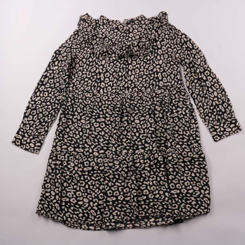 Платье Zara для девочки с длинным рукавом и узором в стиле «леопард». Подойдёт для школы, прогулок и праздников — смотрится аккуратно и легко сочетается с колготками и кардиганом. Практичный плюс: мягкая ткань и свободный крой не сковывают движения.