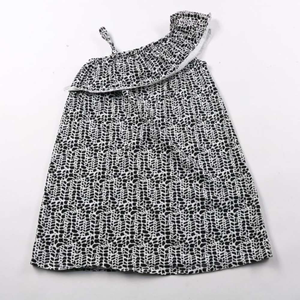 Летнее платье George для девочки с открытыми плечами и асимметричным воланом, выполнено в чёрно-белом принте. Подойдёт для прогулок и отдыха в тёплую погоду. Хлопковая ткань лёгкая и дышащая, удобно носить каждый день.