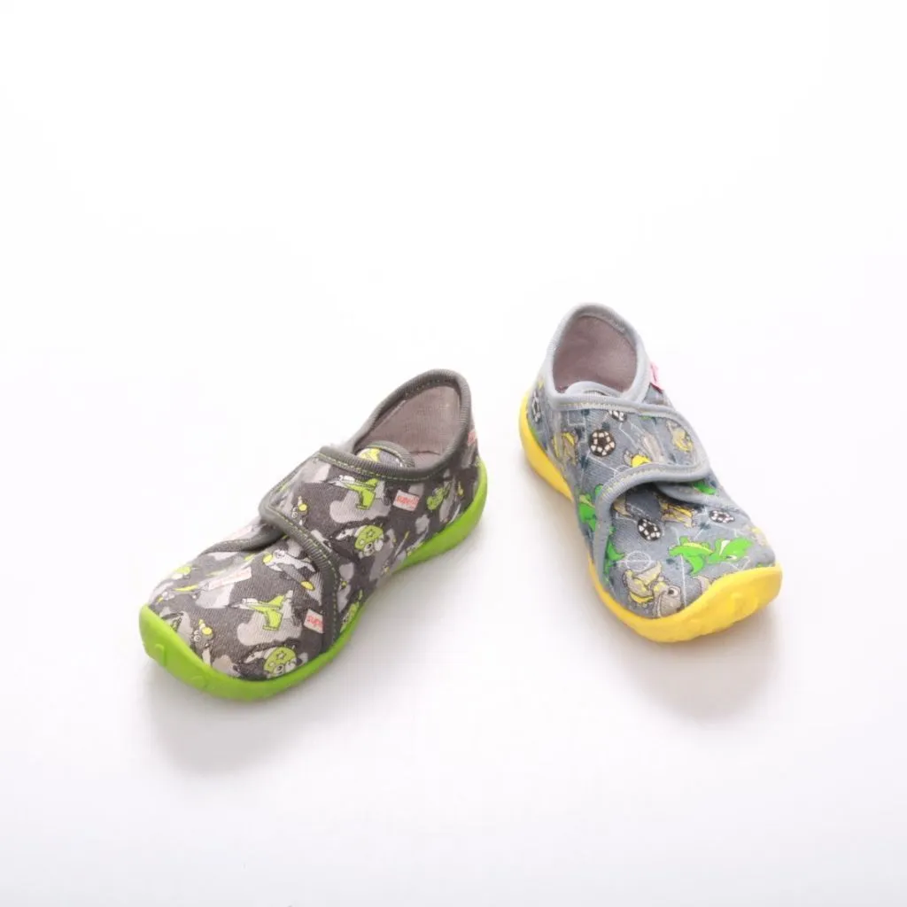 Детские тапочки с текстильным верхом и ярким принтом, застёжка на липучке помогает быстро надевать и фиксировать обувь по ноге. Подойдут для дома или детского сада. Лёгкая подошва с рельефом делает ходьбу более устойчивой на гладком полу.
