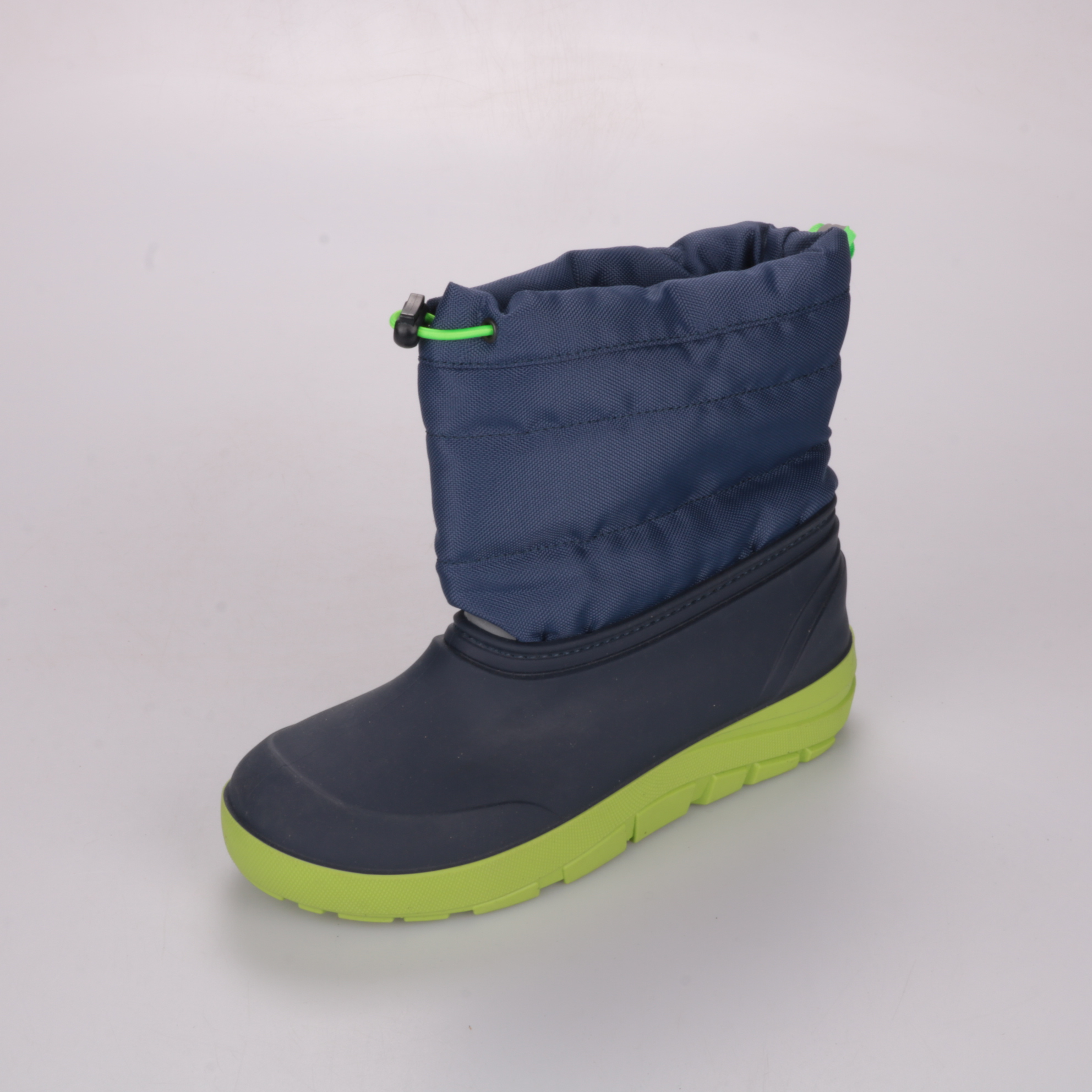Детские сноубутсы для мальчиков: тёмно-синий верх с утяжкой и салатовая рельефная подошва. Подойдут для зимних прогулок по снегу и слякоти. Лёгко надеваются и хорошо держат тепло за счёт высокой голенища.