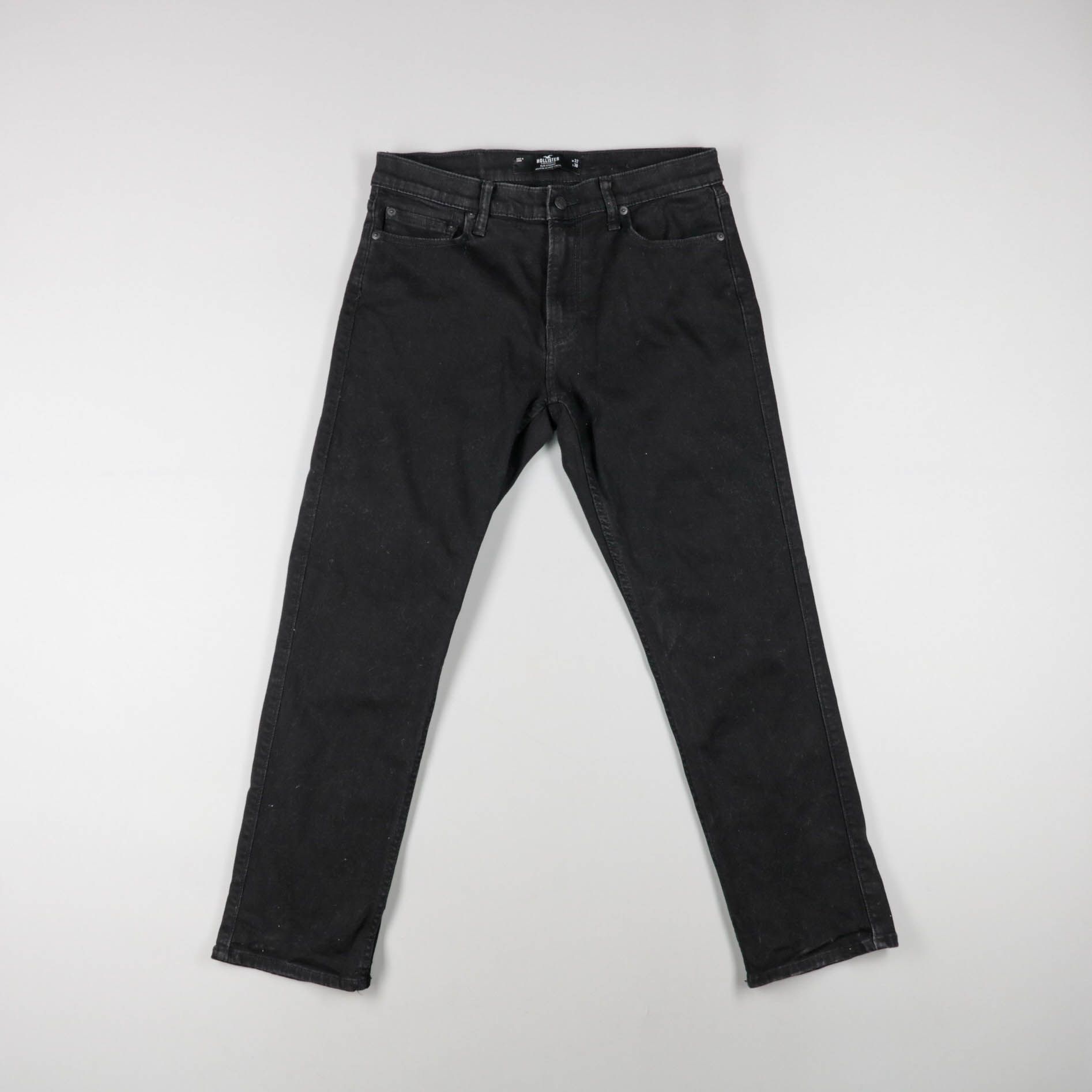 Мужские джинсы Hollister в чёрном цвете, классическая 5‑карманная модель на пуговице и молнии. Подойдут на каждый день и легко сочетаются с базовыми вещами и обувью. Практичный плюс — тёмный деним выглядит аккуратно и менее маркий в носке.