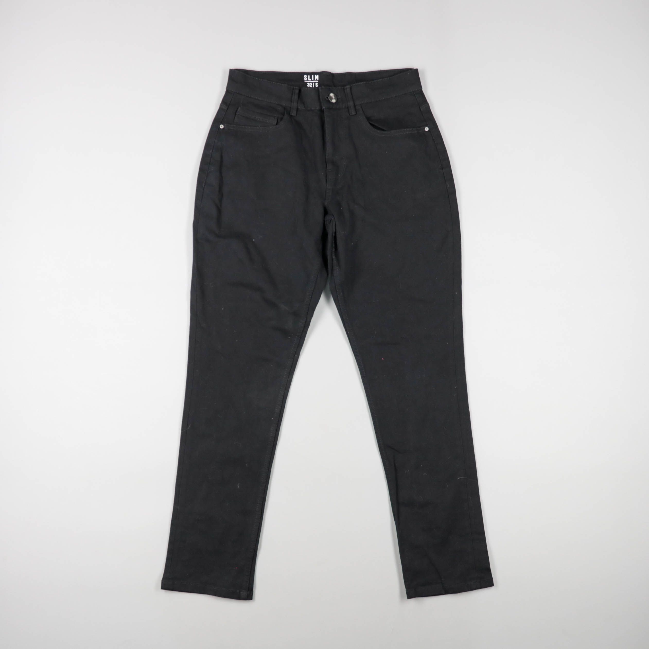 Мужские чёрные джинсы зауженного кроя (slim) с классической посадкой и пятью карманами. Подойдут на каждый день и для более аккуратных образов благодаря однотонному цвету без потертостей. Практичны в носке и легко сочетаются с любым верхом и обувью.