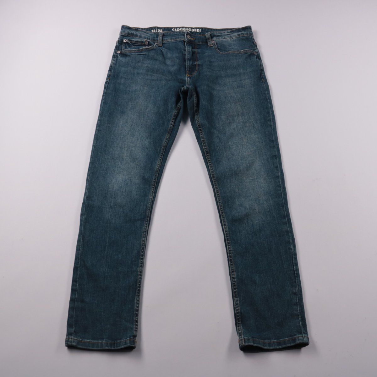 Мужские джинсы Clockhouse Slim из синего денима, посадка ближе к зауженной. Подойдут для повседневных комплектов в городе и на работу с нестрогим дресс‑кодом. Ткань со стрейчем лучше садится по фигуре и не сковывает движения.