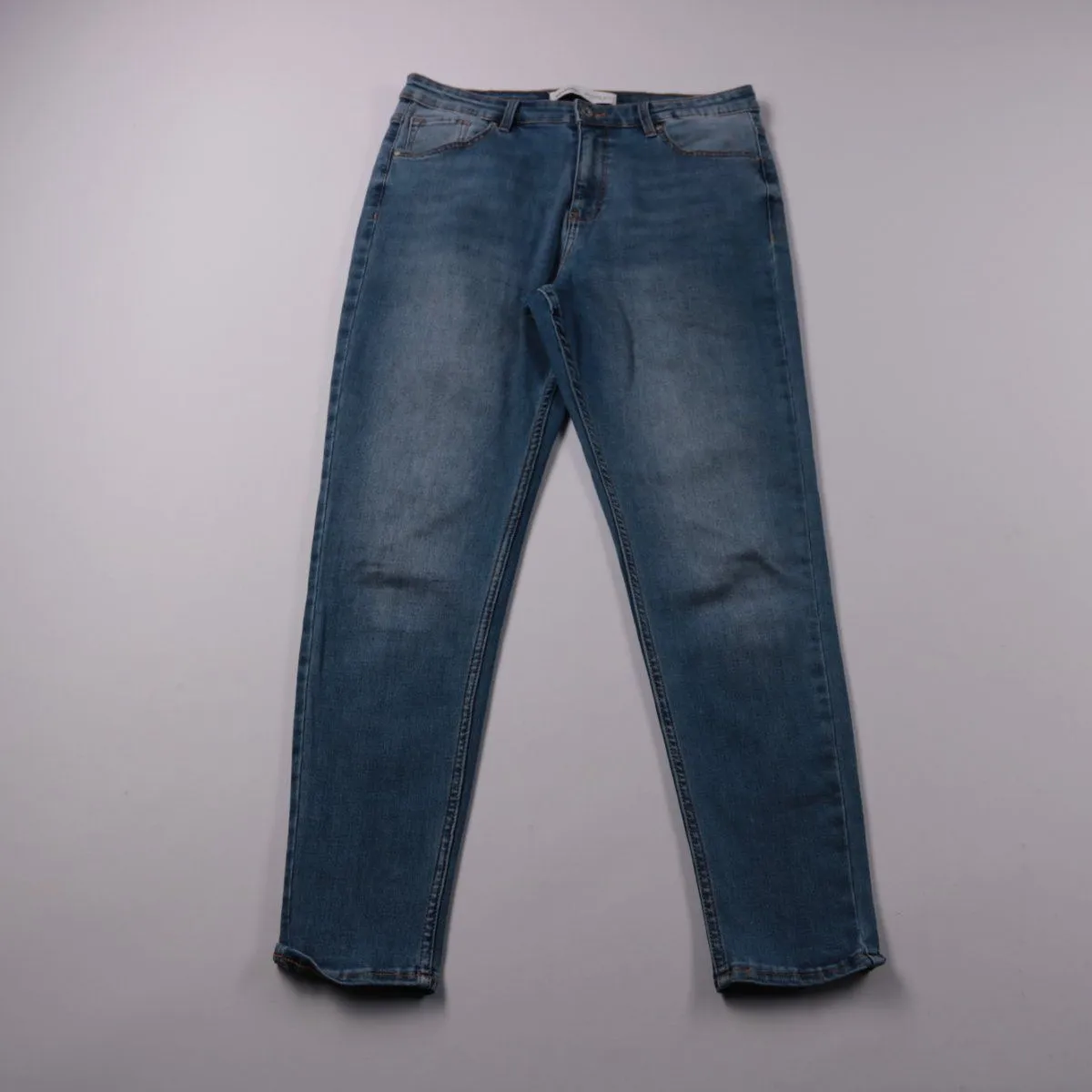 Мужские джинсы Bershka из синего денима с лёгким эффектом выварки, посадка ближе к классической. Подойдут на каждый день — для города, работы или прогулок. Практичный материал со стрейчем даёт комфорт в движении и хорошо держит форму.