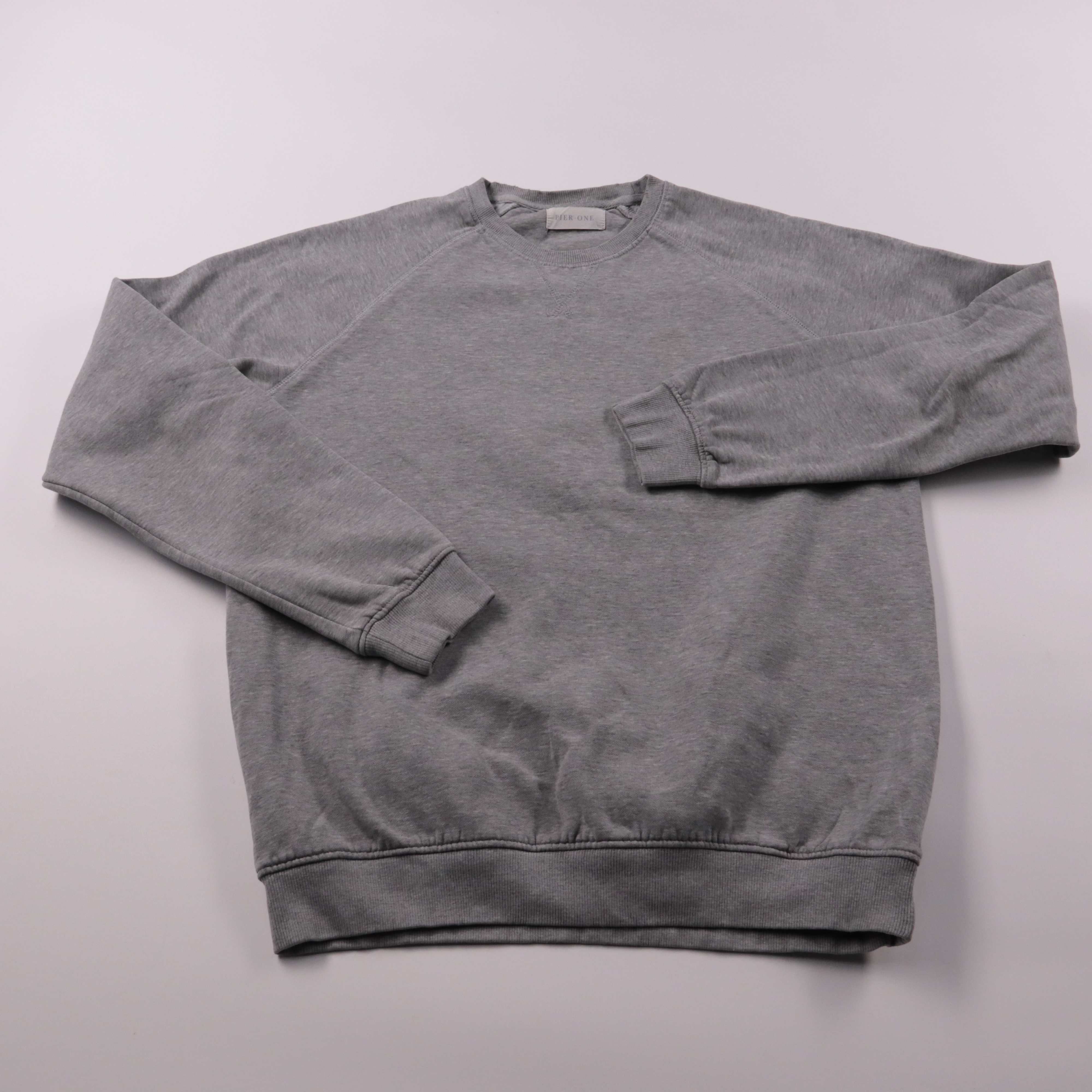 Мужской свитшот Pier One серого меланжа, базовая модель с круглым вырезом и манжетами. Подойдёт для повседневной носки и в офис без строгого дресс-кода, легко сочетается с джинсами и чиносами. Практичный плюс — мягкий футер и простой уход.