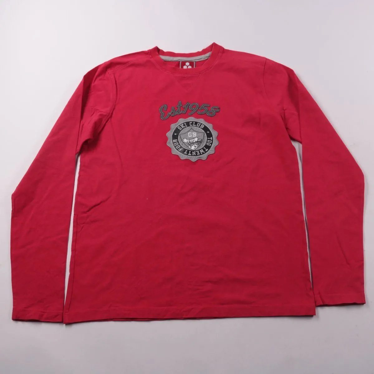 Мужская футболка TOG24 с длинным рукавом, красного цвета, с принтом на груди. Подойдёт для повседневной носки в прохладную погоду и как базовый слой. Натуральный хлопок хорошо дышит и комфортен в носке.