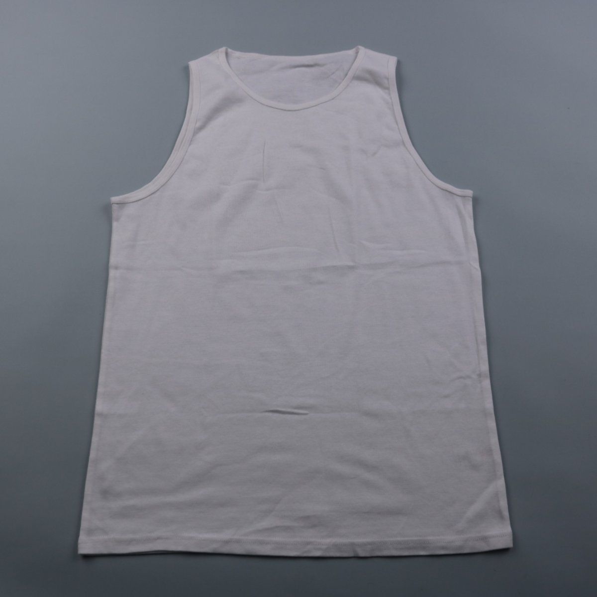 Мужская белая майка без бренда, классический крой с круглым вырезом и без рукавов. Подойдёт для дома, спорта и как нижний слой под рубашку или худи. Практична в уходе и легко сочетается с любой одеждой.
