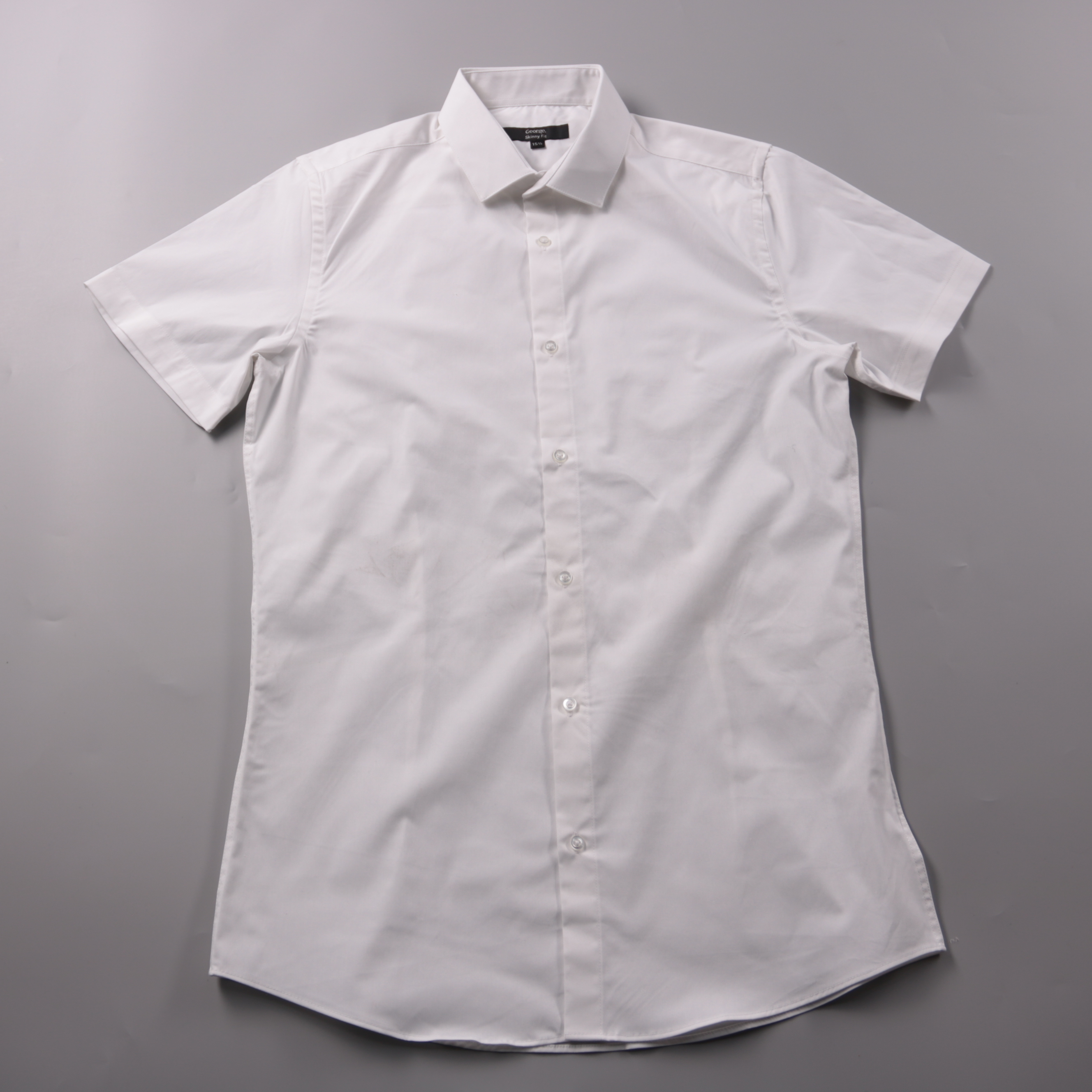 Мужская рубашка George Skinny Fit белого цвета с коротким рукавом и классическим воротником. Подойдёт для офиса, школы или торжественных случаев — легко сочетается с брюками и джинсами. Практичный плюс: ткань с добавлением эластана лучше тянется и комф...