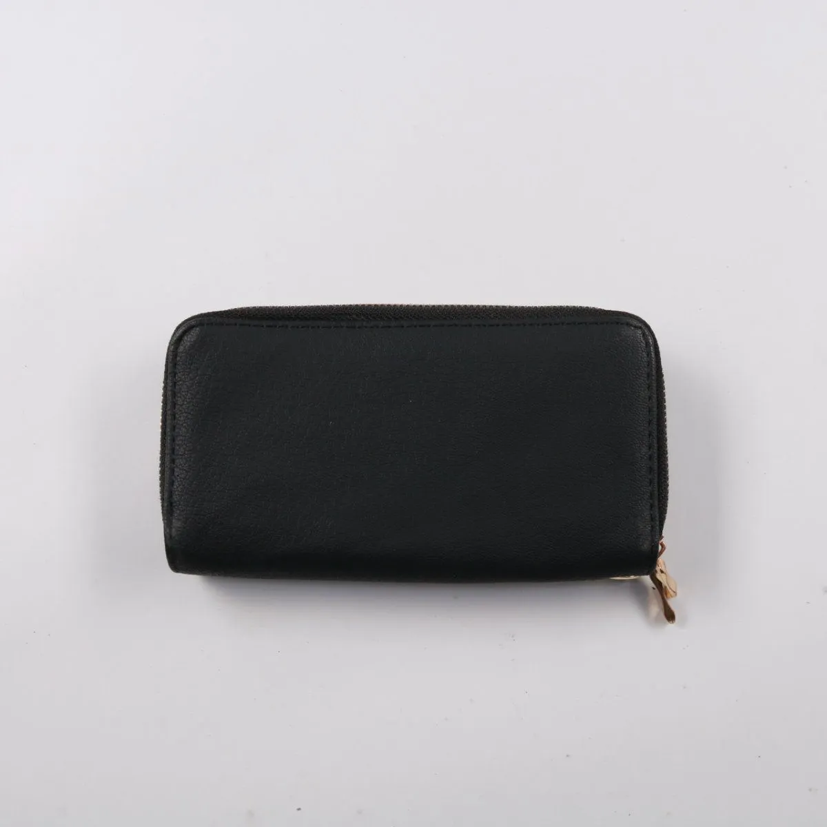 Чёрный кошелёк на молнии с несколькими отделениями внутри, подойдёт для повседневного использования и поездок. Удобно раскладывается и помогает держать купюры, карты и мелочь раздельно. Компактный формат легко помещается в сумку или рюкзак.