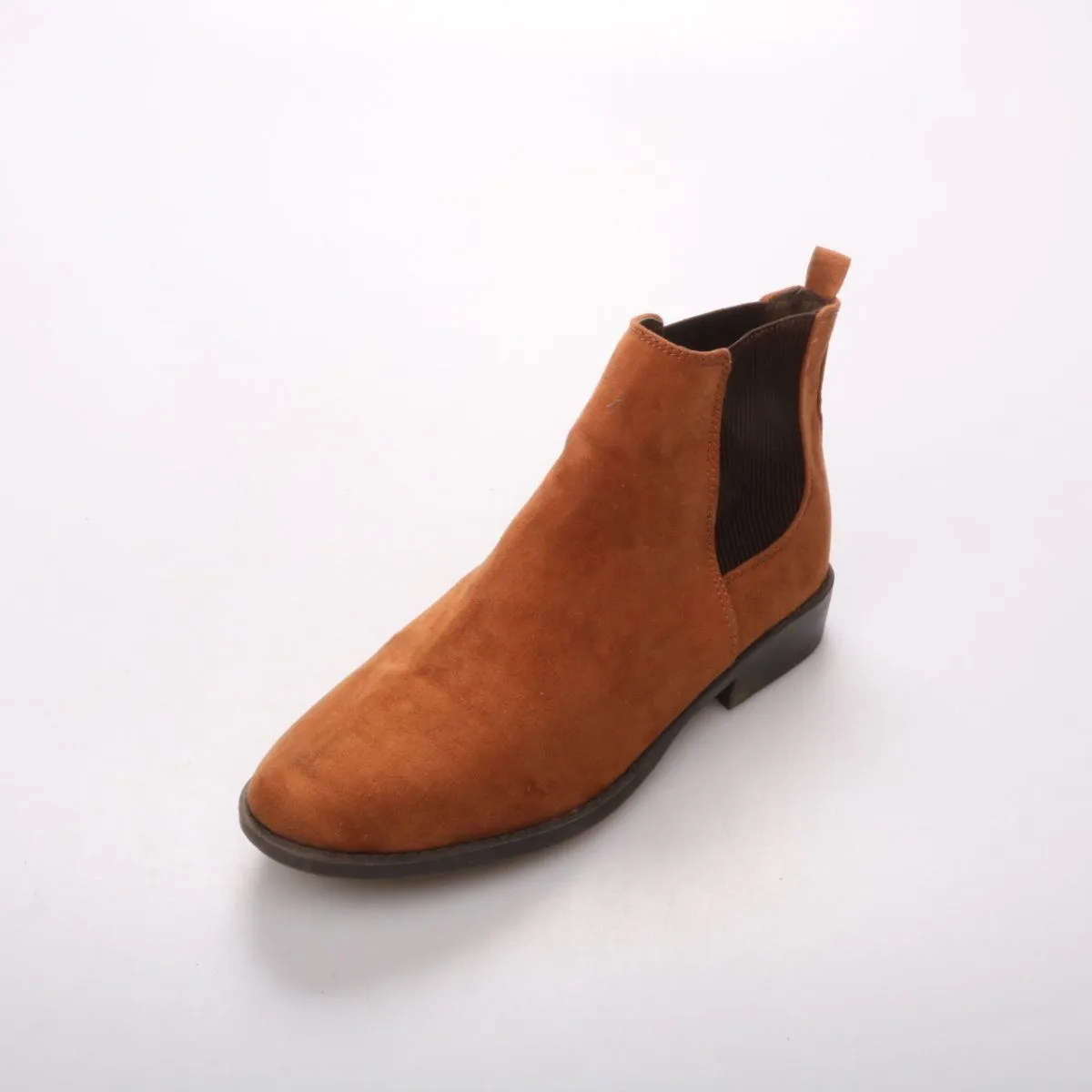 Женские ботильоны Primark из коричневой замши с эластичными вставками по бокам в стиле челси. Подойдут для повседневных образов в межсезонье с джинсами или юбками. Удобно быстро надевать благодаря резинкам и устойчивому низкому каблуку.