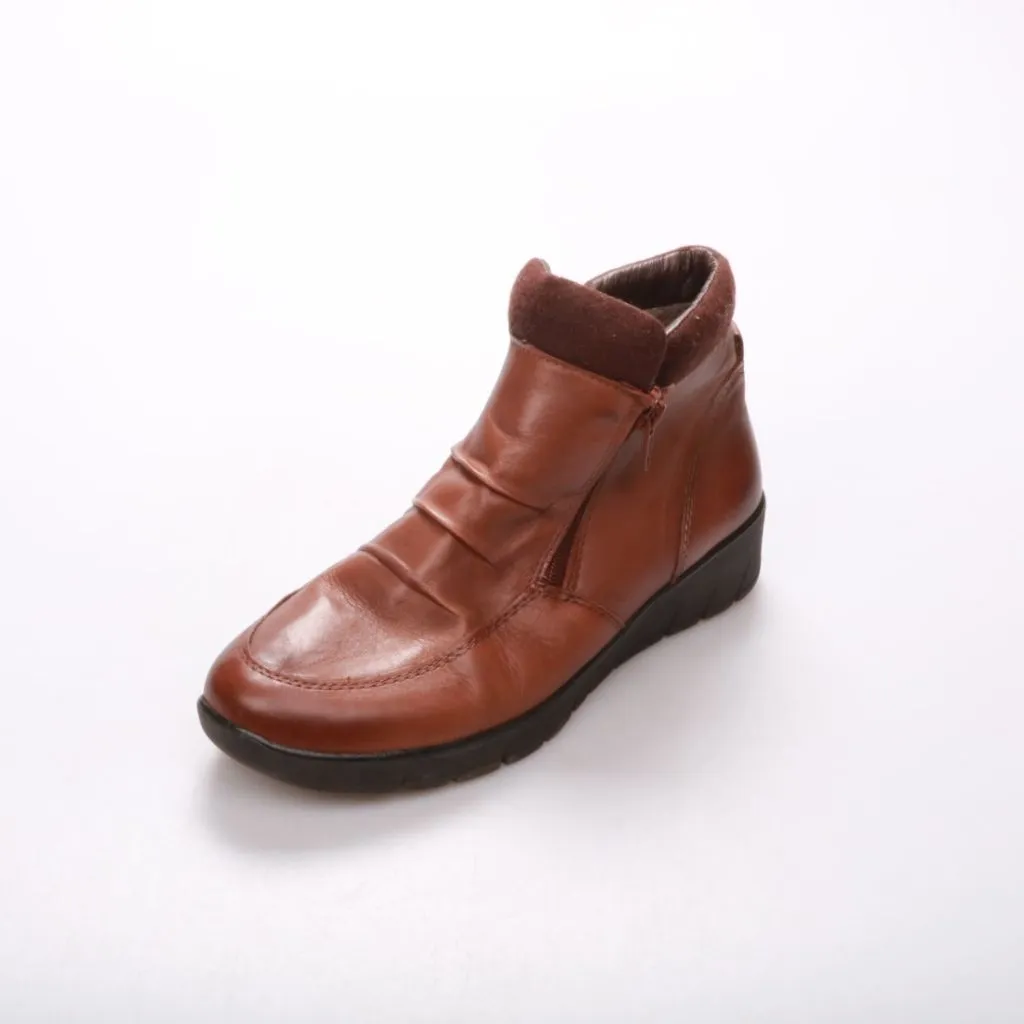 Кожаные ботильоны на молнии в коричневом цвете, с мягким воротником и удобной посадкой по щиколотке. Подойдут для повседневной носки в городе в прохладную погоду осенью и весной. Практичная рельефная подошва даёт устойчивость и хорошее сцепление.