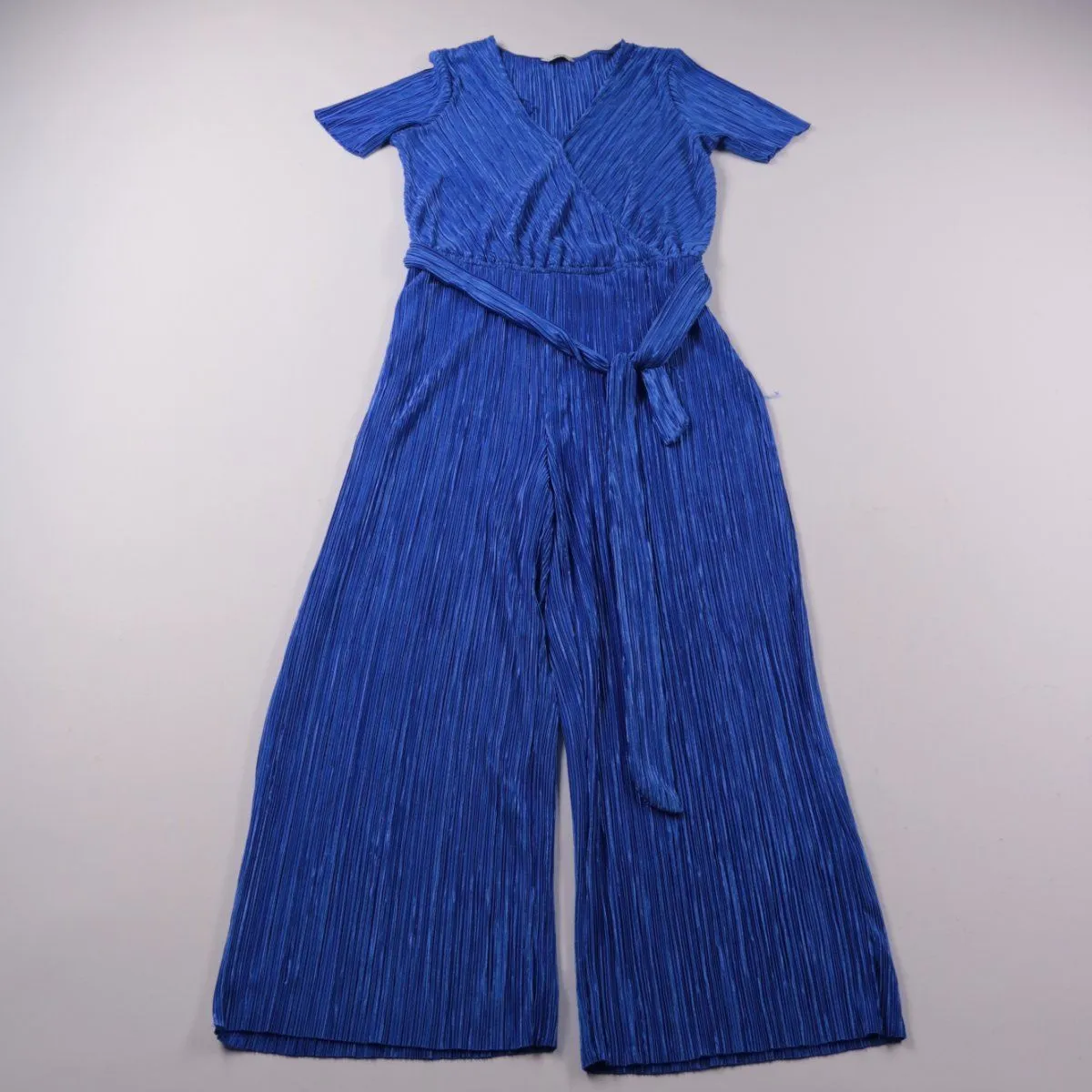 Женский комбинезон Envii насыщенного синего цвета с плиссированной фактурой и широкими брюками. Модель с коротким рукавом, запахом на груди и поясом, который подчёркивает талию — удобно для летних прогулок и вечерних выходов. Лёгкий полиэстер почти не мнётся и быстро сохнет.
