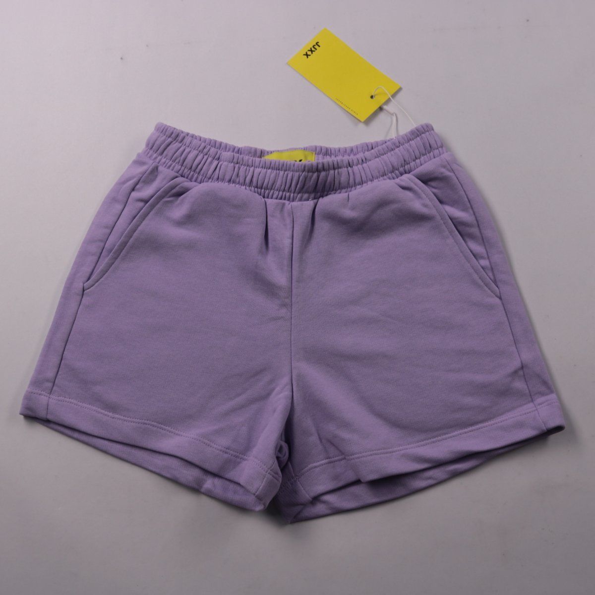 Женские трикотажные шорты JJJX лилового цвета с высокой посадкой и эластичным поясом. Подойдут для дома, прогулок и спортивных образов в тёплую погоду. Мягкий хлопковый материал комфортен и прост в уходе.