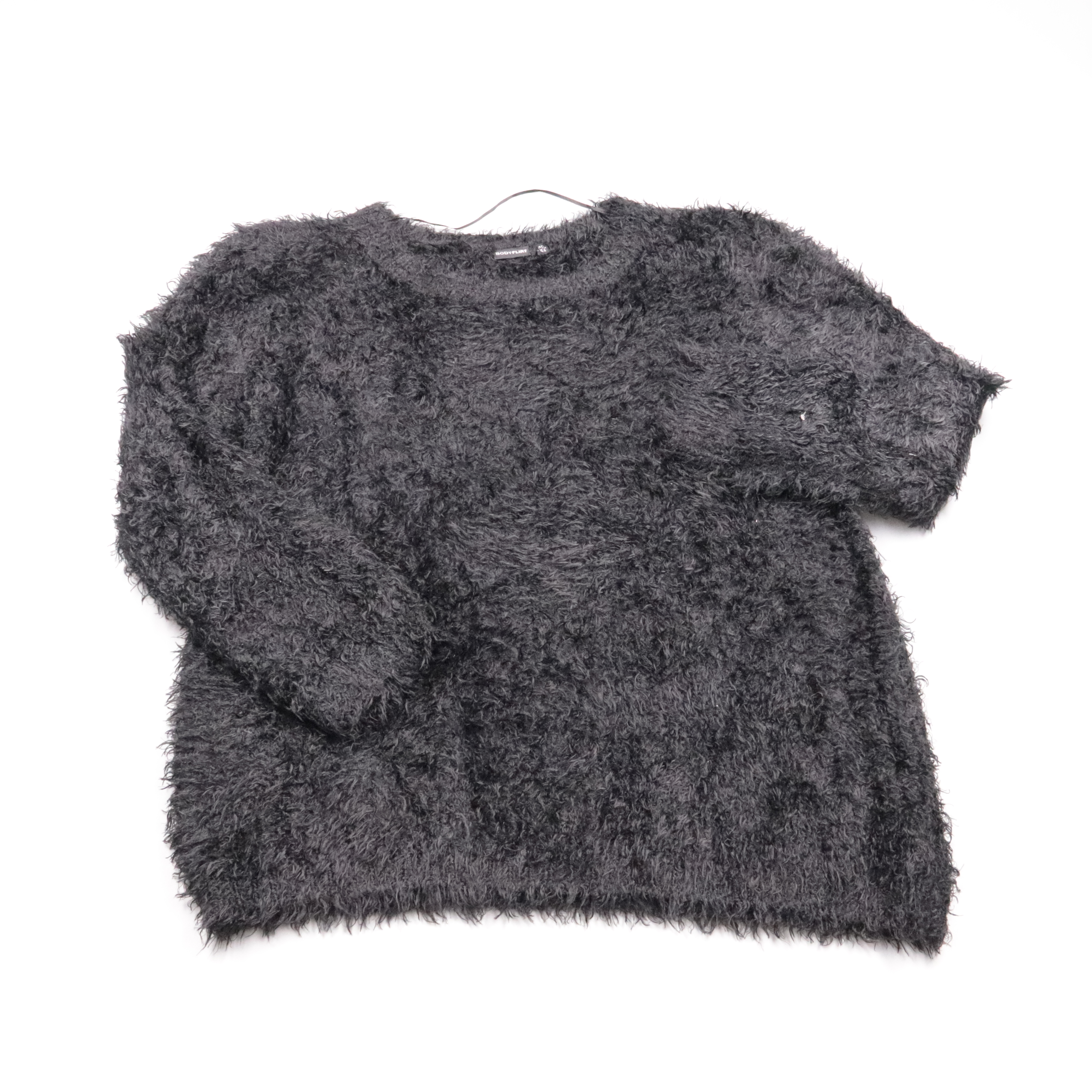 Пушистый свитер Bodyflirt графитового цвета, мягкий на ощупь и с уютной фактурой «травка». Подойдёт для повседневных образов с джинсами или юбкой в прохладную погоду. Практичный плюс — лёгкий материал из полиэстера, быстро сохнет и прост в уходе.