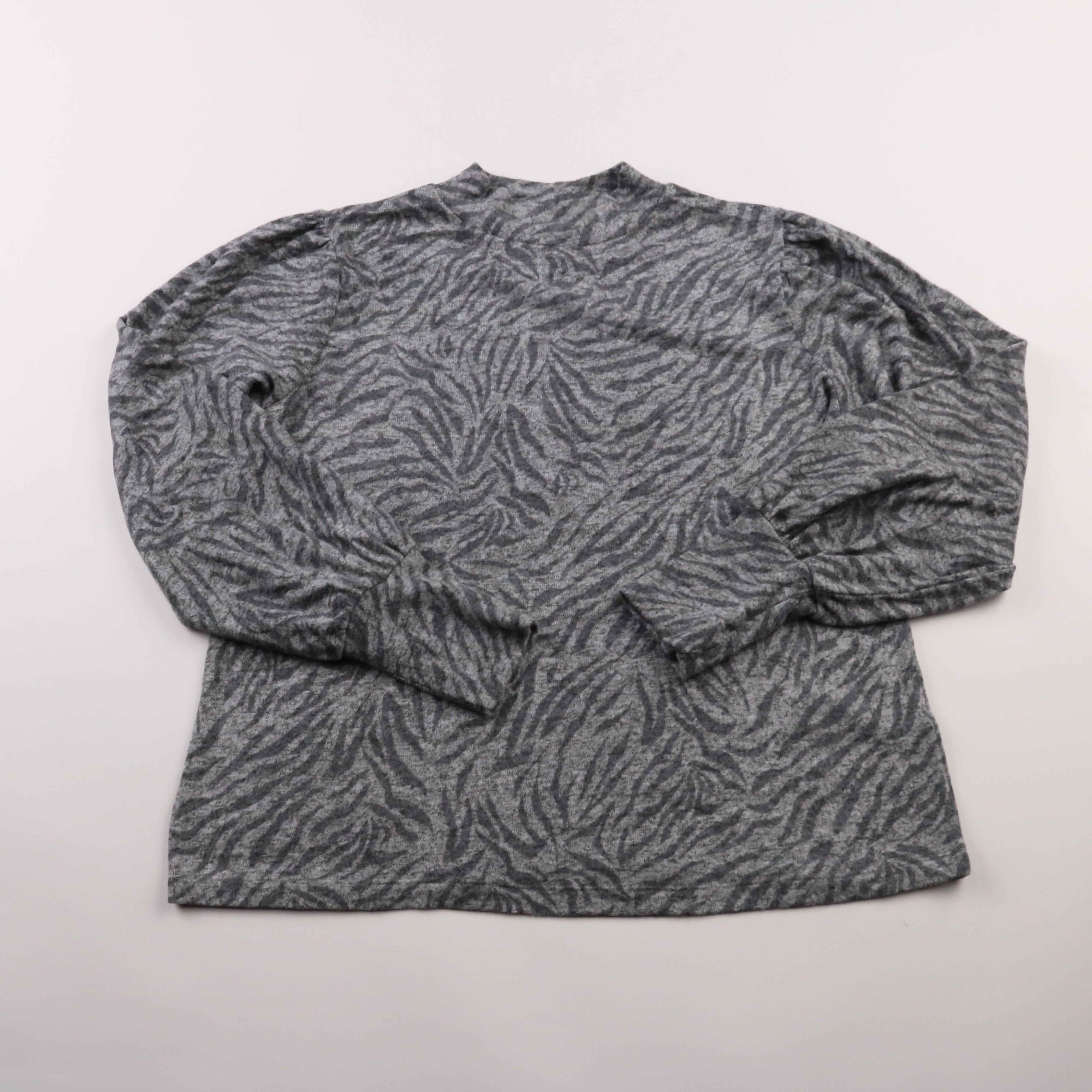 Женская кофта с длинным рукавом в сером цвете с принтом под зебру. Подойдёт для повседневных образов в прохладную погоду, хорошо смотрится с джинсами и брюками. Материал мягкий и комфортный, изделие легко стирается и быстро сохнет.