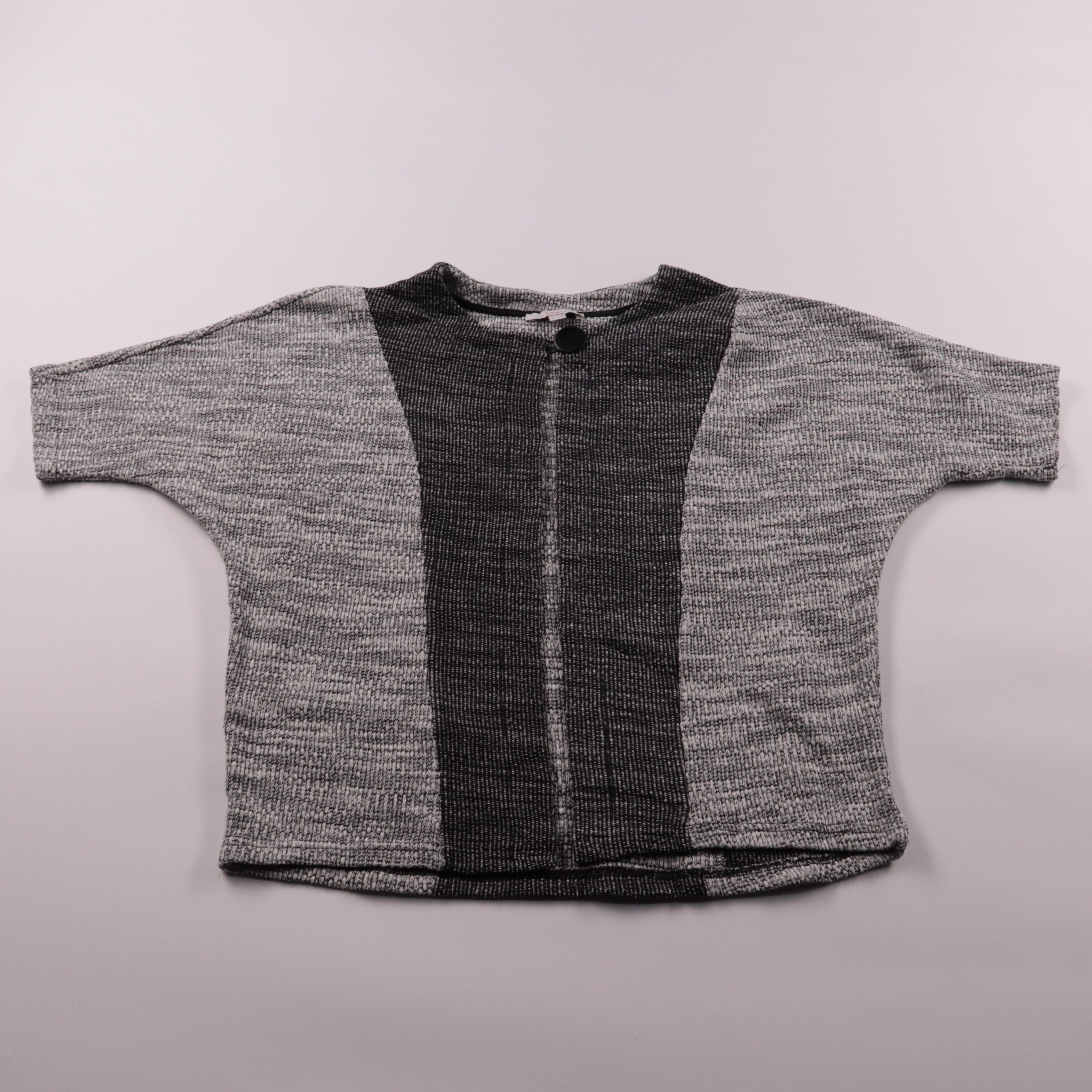 Кардиган Esprit в серо-чёрной гамме с фактурной вязкой и крупной пуговицей у горловины. Подойдёт для прохладных дней в межсезонье, удобно накидывать на топ или платье. Практичный материал хорошо держит форму и не мнётся.
