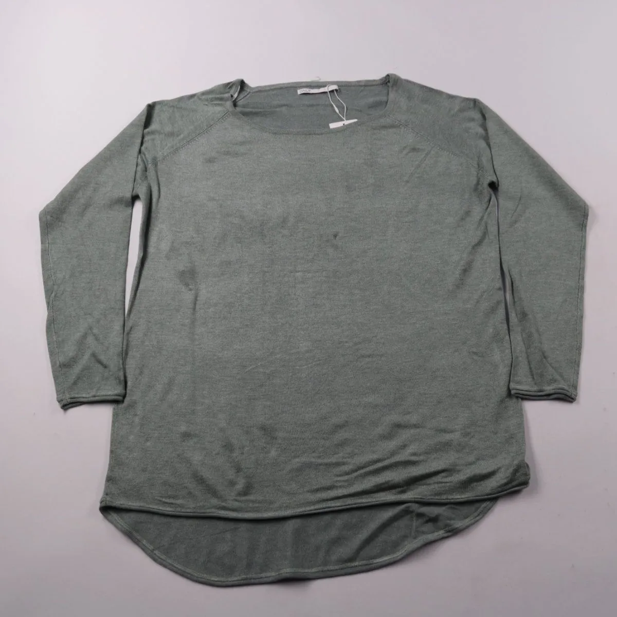 Джемпер ONLY из тонкого трикотажа с длинным рукавом реглан и округлым вырезом. Удлинённая спинка делает модель удобной для повседневных образов и многослойных комплектов в офис или на прогулку. Практичный плюс — лёгкий материал с добавлением полиамида лучше держит форму.