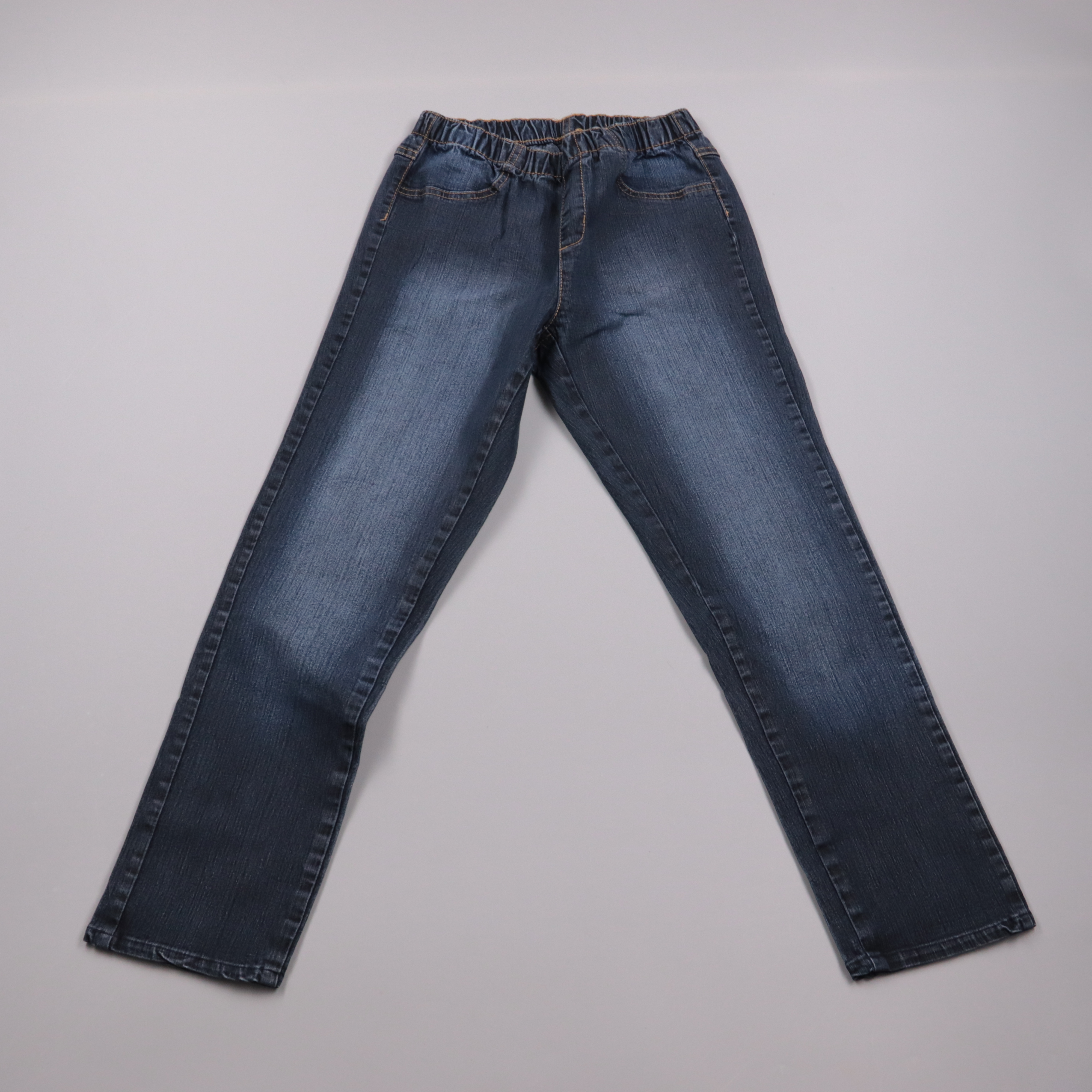 Женские джинсы C&A из тёмно-синего денима с мягким высветлением и эластичным поясом на резинке. Подойдут на каждый день и для прогулок, удобно садятся по фигуре и не стесняют движения. Практичный плюс — ткань со стрейчем, легко носить и сочетать с базо...