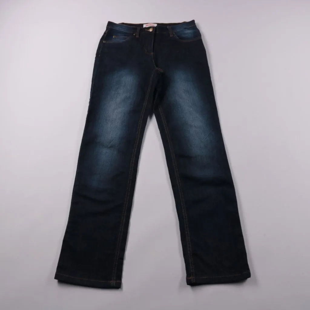 Женские джинсы John Baner из тёмно-синего денима с лёгким высветлением спереди. Подойдут для повседневных образов и офиса в стиле casual. Практичный плюс — плотная ткань со стрейчем (эластан) для более комфортной посадки.