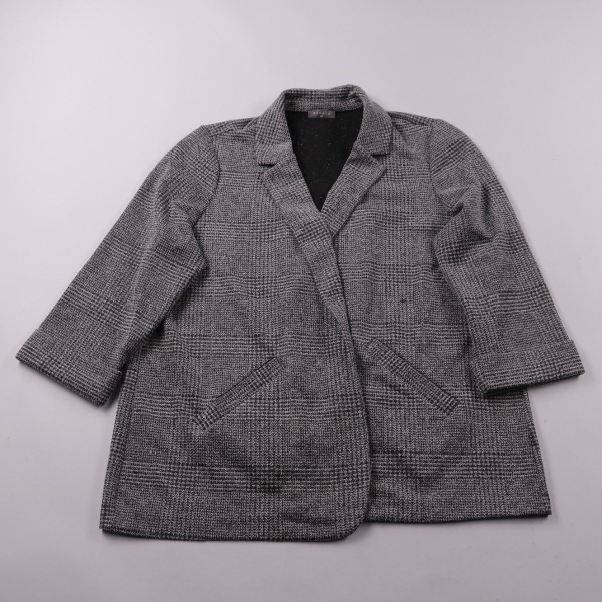 Женское пальто в серую клетку прямого силуэта с отложным воротником и накладными карманами. Подойдёт для повседневных образов в межсезонье и носки слоями. Практичный плюс — немаркий цвет и универсальный принт.