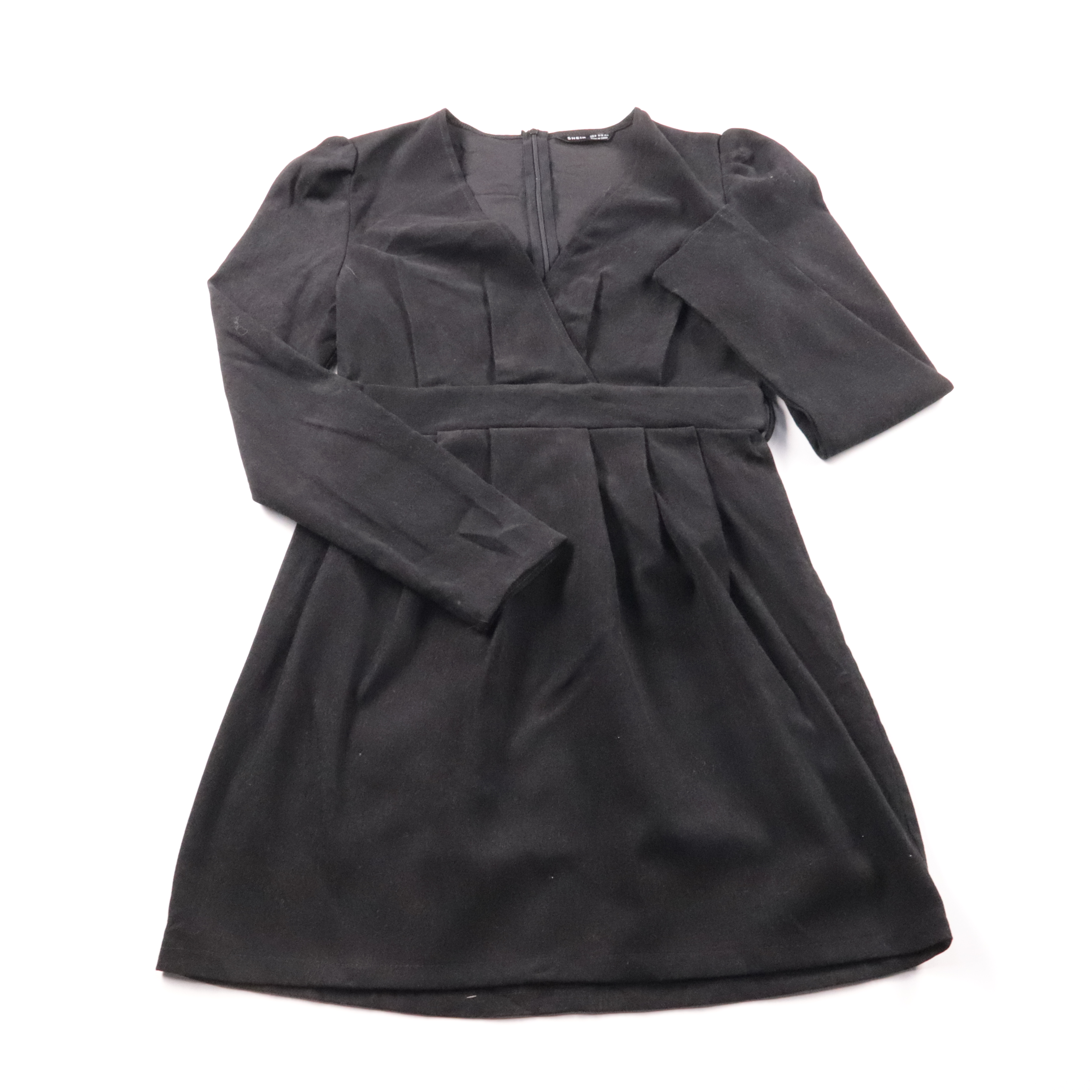 Платье Shein чёрного цвета с V-образным запахом и длинными рукавами, подчёркивает талию за счёт кроя. Подойдёт для офиса, свидания или вечернего выхода с лаконичными аксессуарами. Ткань со спандексом немного тянется и комфортно садится по фигуре.