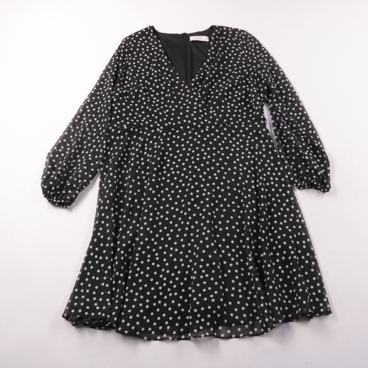 Повседневное платье Wallis Petite чёрного цвета в белый горох, с V-образным вырезом и длинными рукавами на резинке. Подойдёт для офиса и прогулок в прохладную погоду с колготками и ботильонами или лоферами. Лёгкая ткань и подкладка делают его удобным в носке и не просвечивающим.
