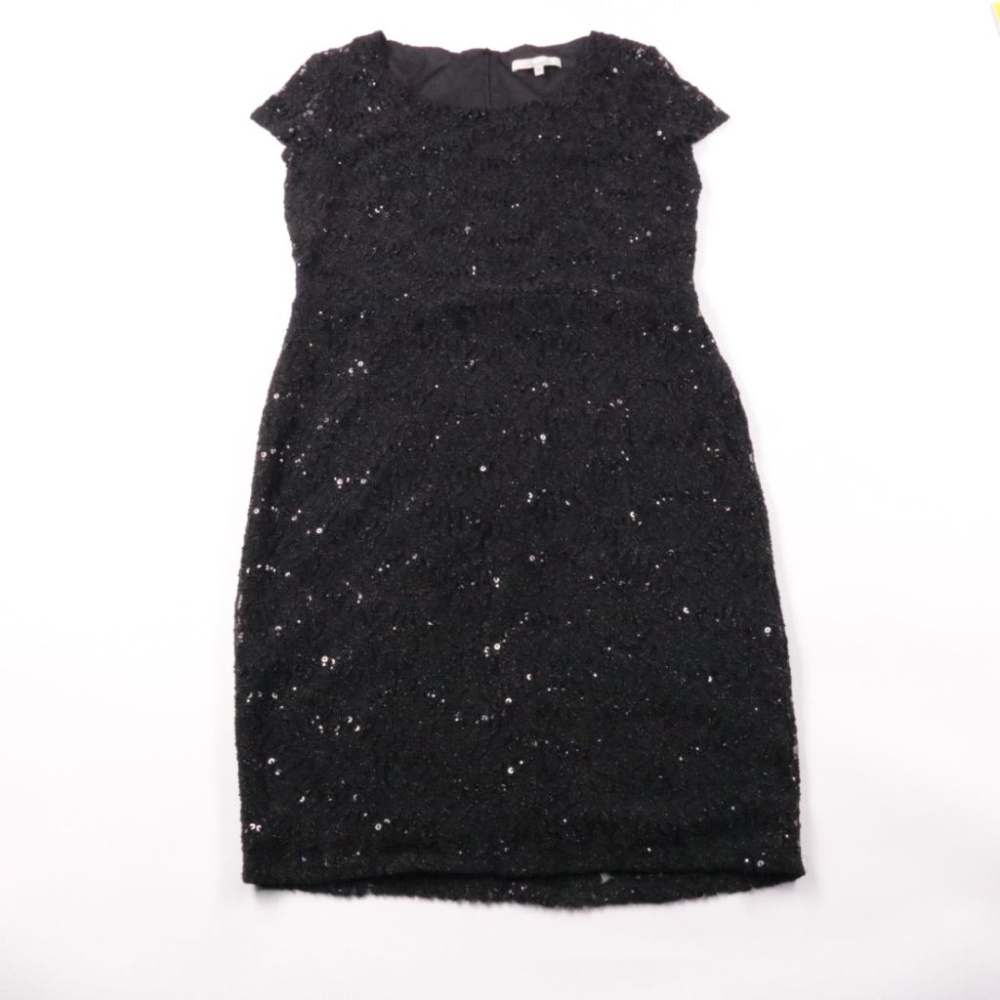 Вечернее платье Peacocks чёрного цвета с фактурной тканью и лёгким блеском. Подойдёт для праздников и мероприятий, хорошо смотрится с лаконичными туфлями и клатчем. Ткань тянется за счёт эластана и комфортно садится по фигуре.
