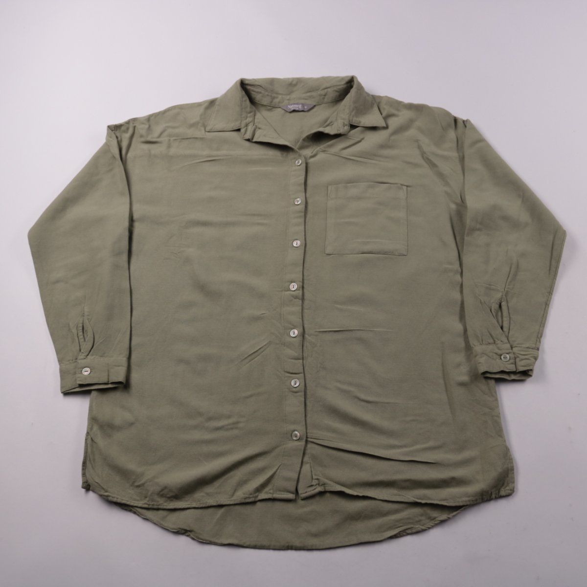 Женская рубашка Nutmeg цвета хаки с длинным рукавом и застёжкой на пуговицы, есть нагрудный карман. Подойдёт для повседневных образов и офиса, можно носить навыпуск. Смесь вискозы, хлопка и льна хорошо дышит и комфортна в течение дня.