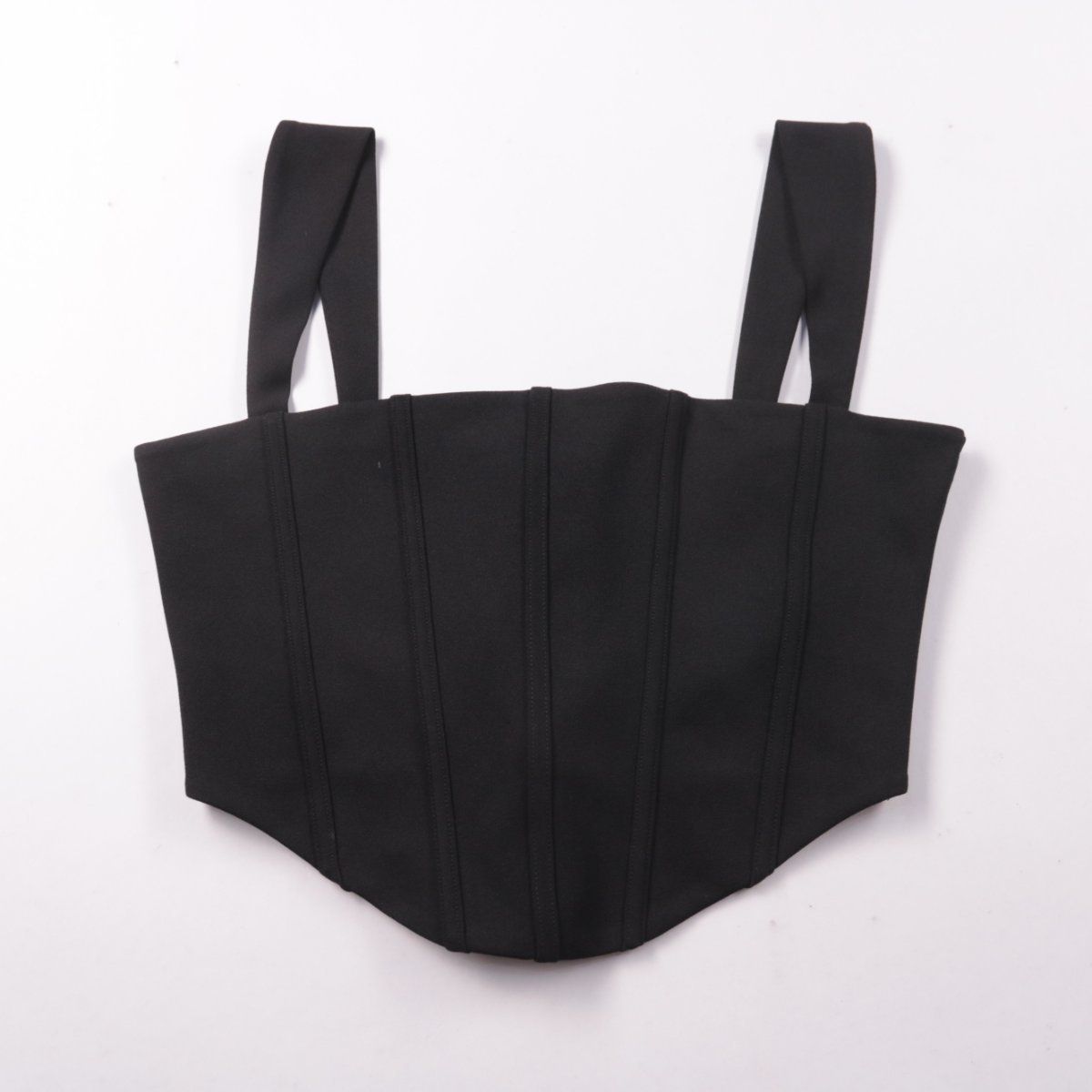 Топ-корсет Ginnat Sot чёрного цвета с формованным силуэтом и вертикальными швами. Подойдёт для вечерних выходов и акцентных образов с жакетом или джинсами. Плотный материал держит форму и подчёркивает линию талии.