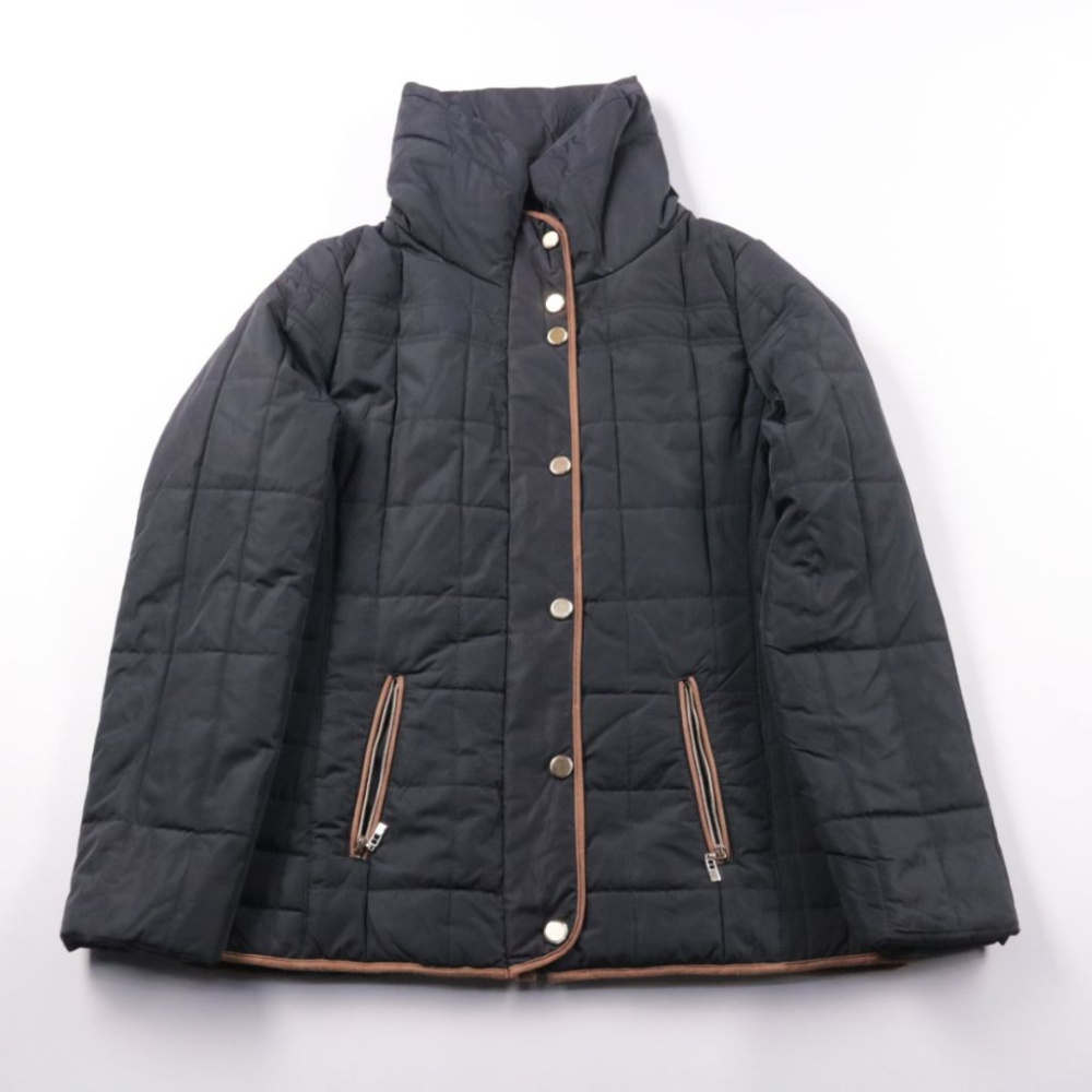 Стёганая демисезонная куртка с высокой стойкой и отделкой кантом по борту и низу. Подойдёт для прохладной весны/осени, есть два кармана на молниях. Практична в носке: лёгкая и хорошо держит форму.