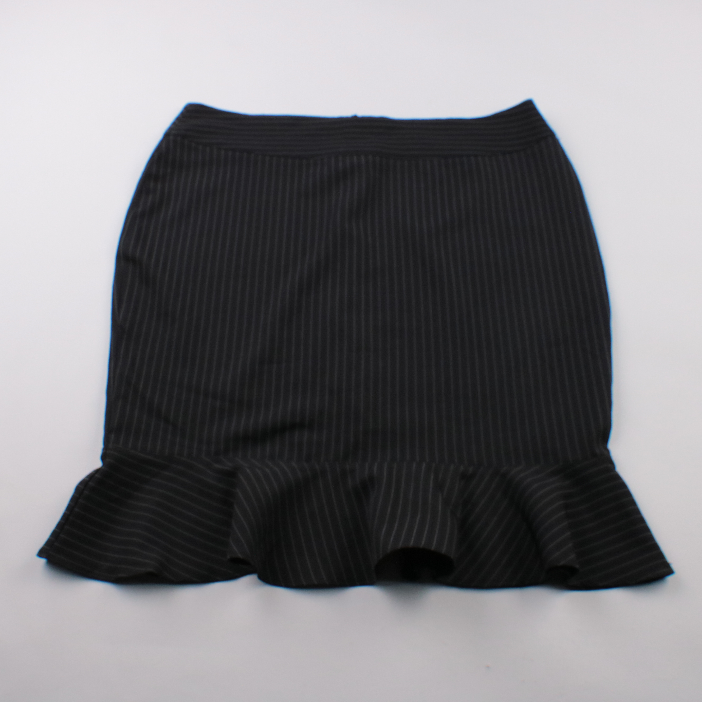 Юбка Mastiçe чёрного цвета в тонкую полоску, с воланом по низу. Подойдёт для офиса и повседневных образов с блузой или водолазкой. Ткань держит форму и выглядит аккуратно в течение дня.